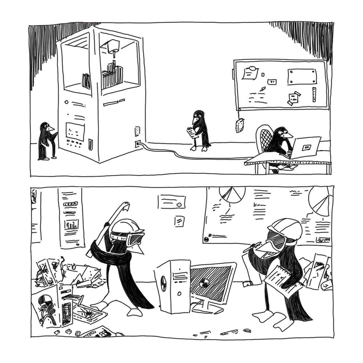 Back in 2016 I drew a handful of comic‑style penguins for sigma star gmbh, an IT‑consulting and training company that specializes in Linux, open‑source software, and cryptography. They didn’t have any real branding yet—just a homemade logo—so when clients started calling them the “Penguin‑A‑Team,” the idea of creating their own penguin characters was born. These illustrations were meant to be fun, a little cheeky, and a visual nod to the open source and Linux community. In recent years I developed a new and cleaner style for their company and branding. But I still cherish this old penguin drawings and their special charme.