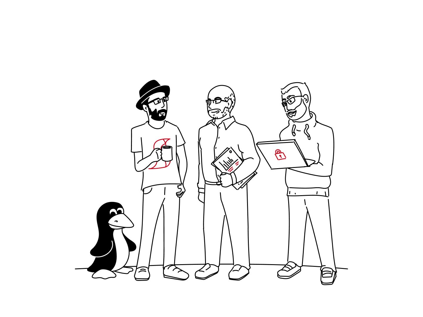 sigma star gmbh is an IT‑consulting and training company that specializes in Linux, open‑source software, and cryptography. Their visual language needs to balance the seriousness of the work with the light‑hearted vibe of a team that’s always ready for a joke. The penguin characters are inspired by the Linux mascot, but are a little more motivated and active than good old Tux. They act as stand‑ins for the company’s experts, adding a touch of playfulness to a technically heavy field. To keep the look clean and instantly recognizable, the palette has reduced to black plus the company’s signature red. You’ll find the penguins on presentation slides, coffee cups, stickers, and on LinkedIn, where they pop up with handy tips and insights.